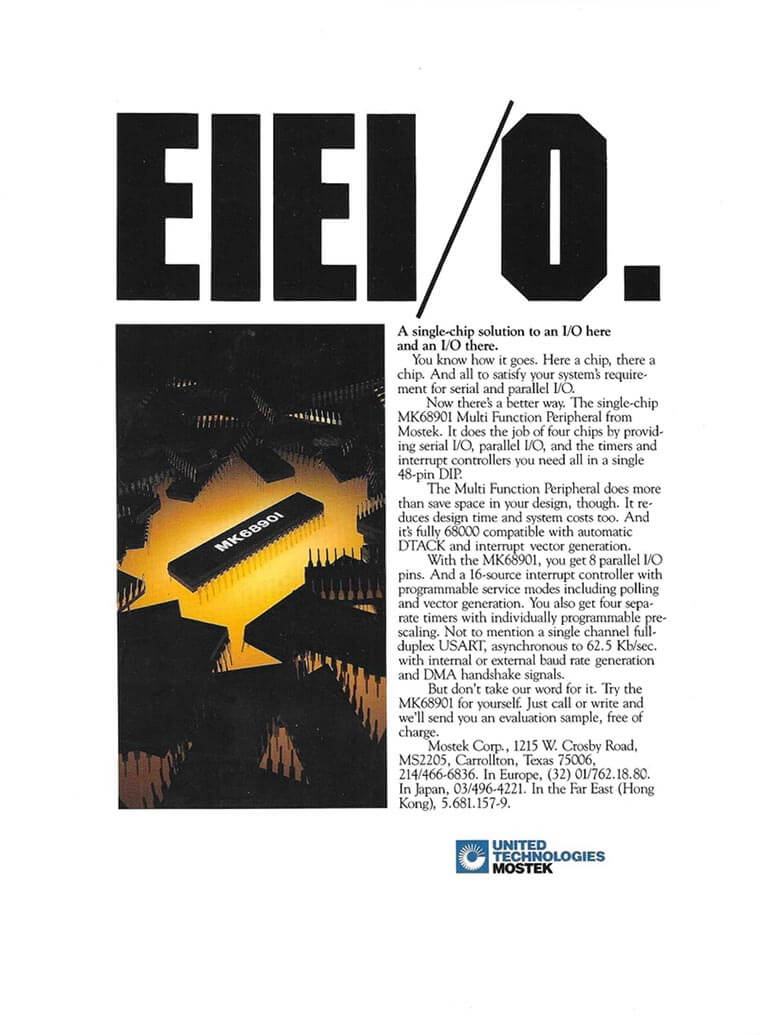 United Technologies Mostek was a leading semiconductor manufacturer known for memory and semicustom chips. Their customers were design engineers dreaming up innovative new products and technologies based on Mostek chips. We treated them as like-minded souls and our creative peers, and we designed this long-running series of ads to acknowledge rather than insult their intelligence.
